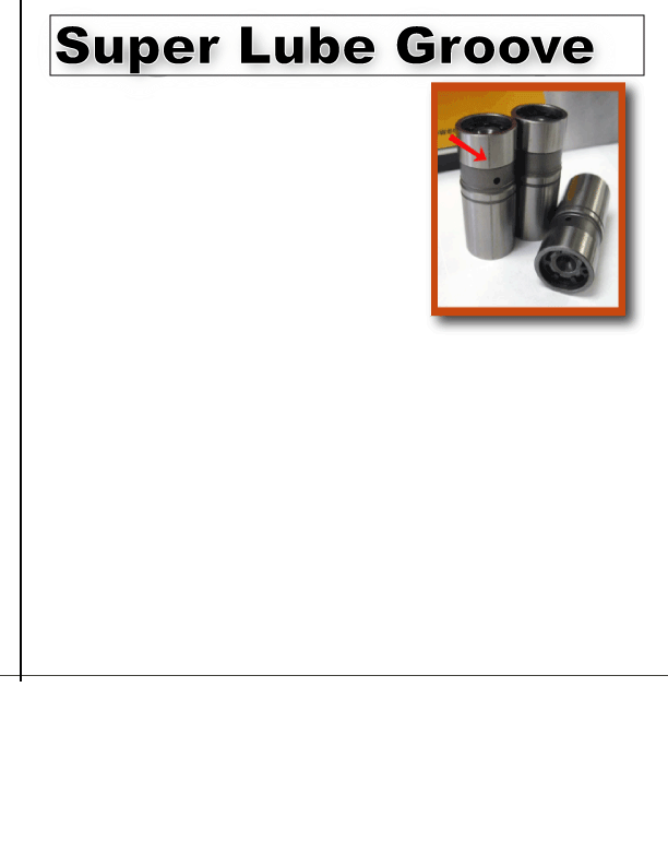 For maximum lubrication and valve train longevity choose the Rhoads Super Lube feature with either Original or V-Max designs. A patented groove runs down the entire length of the lifter (see picture to the right), constantly injecting oil on vital wear surfaces where lifter and cam face meet. This eliminates the need for costly grooving modifications to the lifter bores in the engine block. The Rhoads Super Lube feature greatly improves longevity along with reduced friction. It is available for all Flat Tappet and OE Roller applications where an added oil supply helps reduce friction and wear and enhances oil distribution to all surfaces and needle bearing pressure points. The addition of the Super Lube feature does not in any way alter the performance with V-Pro, V-max or Original Rhoads Lifters.